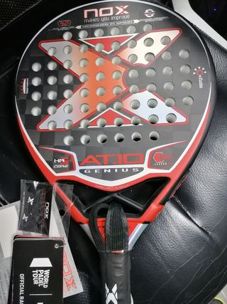 Jouez comme un pro avec la raquette NOX AT10 Genius 12K signée Agustin Tapia ! Poids réglable entre 360 et 375 grammes pour s'adapter à votre style de jeu. Forme en larme pour un équilibre parfait entre contrôle et puissance. La technologie 12K offre une rigidité optimale et une excellente sensation de balle. Raquette polyvalente adaptée aux joueurs de niveau avancé recherchant précision et puissance. Design unisexe élégant qui impressionnera sur les courts. Que vous soyez compétiteur occasionnel ou joueur régulier, cette raquette vous donnera confiance dans tous vos coups. La référence 2024 pour tous les amateurs de padel qui veulent progresser et dominer le jeu. Essayez la raquette du champion et ressentez la différence !